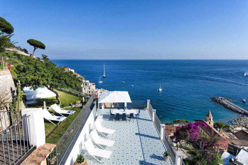 Villan tilat kattavat vaikuttavat 300 neliömetriä ja sisältävät kaksi terassia, joilta avautuvat hurmaavat näkymät Amalfin rannikolle. Ensimmäinen terassi (150m²) on täydellinen paikka nauttia aamukahvia tai rentoutua aurinkotuoleilla, kun taas toinen terassi on varustettu porealtaalla ja tarjoaa panoraamanäkymiä merelle. Sisätiloissa korkeat holvikatot, huolella valitut kalusteet ja kauniit käsintehdyt keramiikkapinnat luovat täydellisen Amalfin rannikon tunnelman.