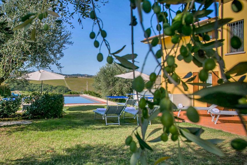 Poggio del Sole on viehättävä yksityinen maisemahuvila Marchen maakunnassa vain kymmenen kilometrin päässä Adrianmereltä. Huvilaa ympäröivät alueelle ominaiset kumpuilevat maisemat. Maaseudun rennosta lomaparatiisista on kuitenkin lyhyt matka Pesaron kaupunkiin, joka tunnetaan vilkkaasta kulttuuritarjonnastaan ja Rossini-oopperafestivaaleista. Päivittäispalvelut löytyvät kolmen kilometrin päästä Candelaran kylästä. Parin kilometrin päässä Santa Maria dell'Arzillan pikkukylässä on pizzeria ja baareja. Historiasta kiinnostuneille Fanon kaupunki on 10 kilometrin etäisyydellä.