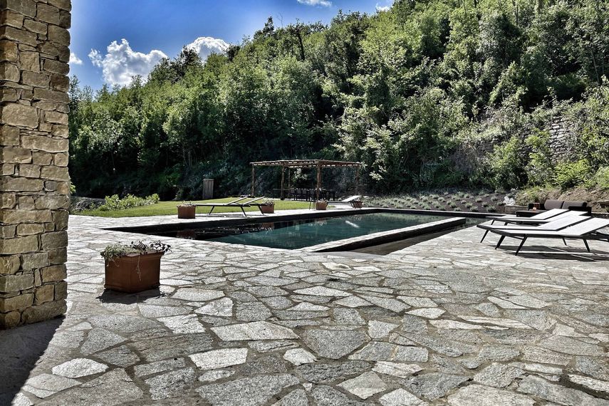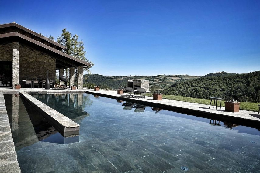 Huvilan ulkopuolelta avautuu henkeäsalpaava näköala vehreille kukkuloille ja rauhallinen sijainti tarjoaa täydelliset puitteet rentoutumiseen. Tilavalla, katetulla ulkoruokailualueella voi nauttia paikallisista erikoisuuksista valmistettuja herkkuja koko seurueen voimin. Vieraiden käytössä on myös grilli ja ulkotulisija. 16 metriä pitkä uima-allas on varustettu rampilla ja se soveltuu myös liikuntarajoitteisille. Huvilalle johtaa päällystämätön tie – auto, jossa on reilu maavara on suositeltava, mutta perille pääsee toki myös tavallisella autolla.