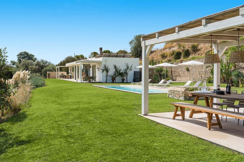 Orizzonte di Noton ympärillä on noin 5000 neliömetrin suuruinen puutarha, jossa on runsaasti tilaa rentoutumiseen ja Sisilian auringosta nautiskeluun. Patiolla on kaksi kalustein varustettua katettua ja valaistua tilaa. Puutarhan keskipiste on vieraiden yksityiskäytössä oleva uima-allas, kooltaan noin 3,5 x 12 metriä. Ulkotiloihin kuuluu lisäksi ruokailuryhmällä varustettu gazebo, jonka vierellä on pihakeittiö ja grillausalue. Sisilian lämpimistä illoista nautitaan täällä pitkään ystävien ja perheen kanssa. Tie on perille saakka päällystetty ja parkkipaikka on huvilan aitojen sisäpuolella.