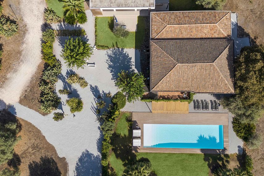 Kaksikerroksisen huvilan 240 neliön tilat ovat ylellinen kokonaisuus, jota avaruus ja luonnonvalo hallitsevat. Kaikissa kolmessa makuuhuoneessa on parivuode, ja jokaisella on oma kylpyhuone. Alakerrassa on suuri oleskelutila ja ruokailualue. Suuret ikkunat tuovat runsaasti valoa ja luovat yhteyden puutarhaan. Keittiö on varusteltu nykyaikaisesti ja sopii erinomaisesti ruoanlaittoon. Samassa kerroksessa on kaksi makuuhuonetta, molemmissa on oma kylpyhuone suihkulla. Lisäksi alakerrassa on erillinen kylpyhuone. Yläkerta muodostuu mezzanine‑tasosta, jonne johtavat portaat olohuoneesta. Täällä on kolmas, hieman erillään muista oleva makuuhuone, joka sopii niille, jotka arvostavat omaa rauhaa. Kylpyhuone on täällä varustettu sekä suihkulla että kylpyammeella. Yläkerran tilat ovat ilmavat, ja näkymät ympäristöön luovat levollisen tunnelman. Kaikki huoneet ovat ilmastoituja. Huvilan varustelu on runsas, kattaen kaikki modernit mukavuudet älytelevisiosta alkaen. Kokonaisuus on viimeistelty laadukkailla materiaaleilla ja hillityllä sisustuksella, joka korostaa luonnollisia sävyjä.