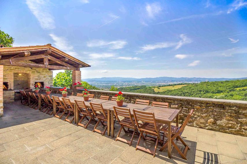 Villa Cedronellan ulkopuolella on iso maisematerassi, josta avautuu upea näköala alas laaksoon. Terassin katetussa osassa on grilli sekä puu-uuni, joissa valmistuvat aitoitalialaiset herkut. Pitkien pöytien ääressä on tilaa koko seurueen yhteisiin illanviettoihin. Kauniilla näköalapaikalla olevan uima-altaan (6x12m) ympärillä olevat aurinkotuolit ja -varjot ovat ihania rentoutumispaikkoja. Yksityiselle parkkipaikalle pääsee myös bussilla.