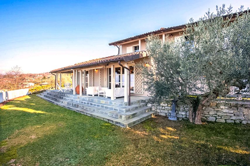 Huvilaa ympäröi hienosti hoidettu puutarha, jossa on aurinkoisella näköalapaikalla infinity-allas (4x8m). Puutarhassa on myös kalustettu gazebo sekä muurattu grilli. Lomavieraiden autoille on katettu parkkipaikka huvilan vierellä.
